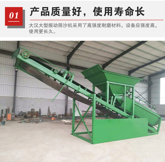 大型振動篩沙機主要用于大型沙石生產(chǎn)線,所以在設(shè)備的耐用性上面會有要求,大漢大型振動篩篩機為了減低用戶在使用設(shè)備因質(zhì)量等造成停機等現(xiàn)象,從而影響工作效益,大漢大型振動篩沙機采用了高強度耐磨材料,設(shè)備應(yīng)強度高,使用更長久。