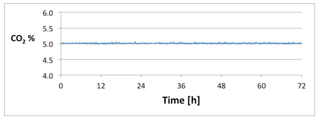 ▲在為期72小時(shí)的測(cè)量期間,VarisKan LUX儀器中的二氧化碳含量保持穩(wěn)定。SkanIt軟件在每個(gè)測(cè)量的運(yùn)行日志中記錄氣體濃度。